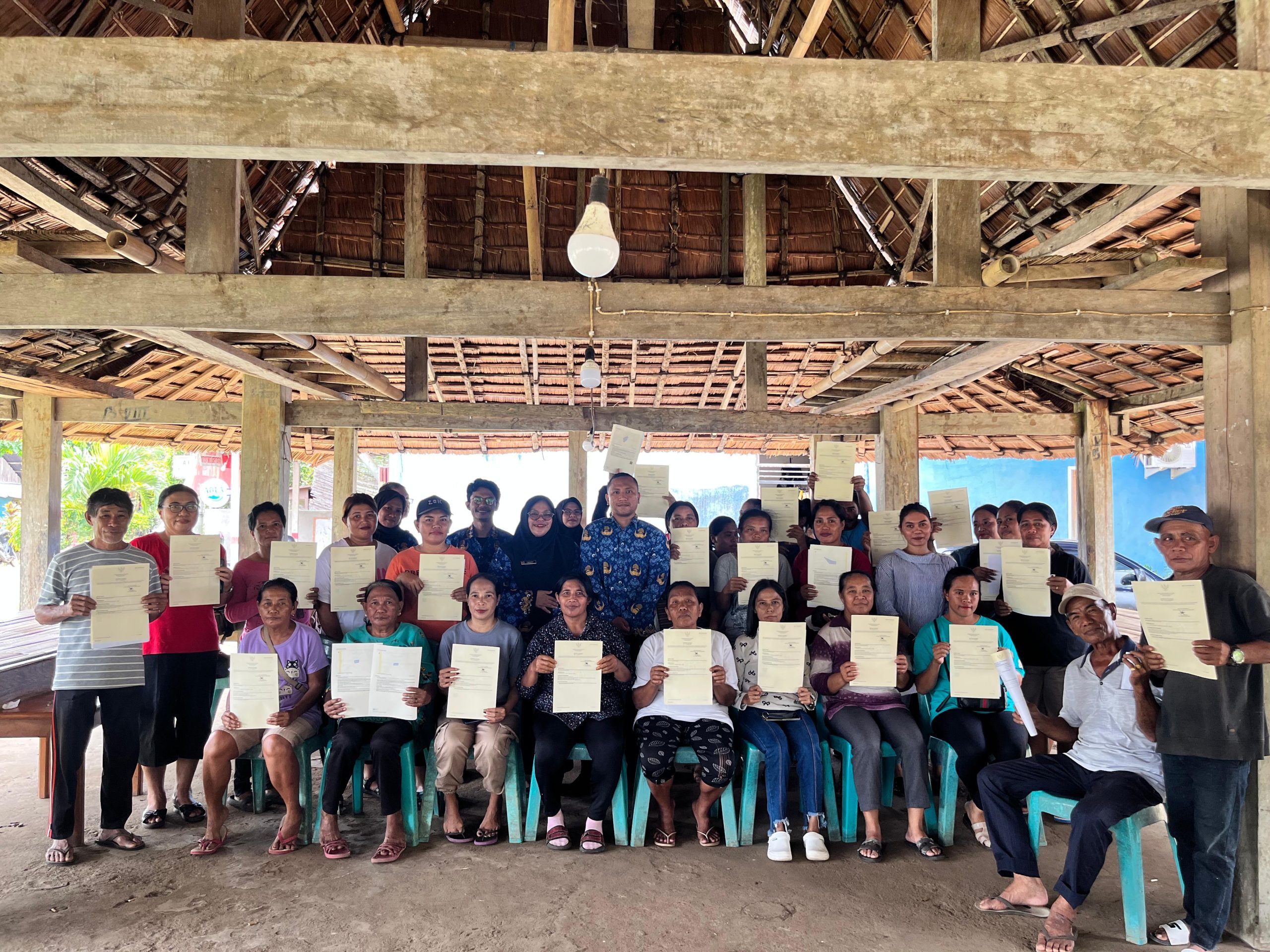 Penyerahan 141 sertipikat tanah kepada warga Desa Hoku-Hoku Kie, Kecamatan Jailolo, Halamahera Barat. Foto: Kantor Pertanahan Halmahera Barat