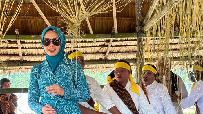 Zahra Yolanda Zaini mendampingi Ketua PKK Provinsi Maluku Utara saat dilakukan adat Mangkanou di Bumi Taliabu. Foto: La Ode Hizrat Kasim/CermatZahra Yolanda Zaini dan para tamu Kontingen HKG PKK mengikuti tarian Yusa. Foto: La Ode Hizrat Kasim/CermatMomen Zahra Yoland Zaini menunggu kedatangan tamu Kontingen HKG PKK yang berkunjung ke Pulau Taliabu. Foto: La Ode Hizrat Kasim/CermatMomen Zahra Yolanda Zaini mengalungi kain kepada salah satu Kontingen HKG PKK. Foto: CermatSaat penjemputan, Zahra Yolanda Zaini memberikan buket bunga kepada ketua PKK Maluku Utara. Foto: CermatDisambut tarian cakalele, Zahra Yolanda Zaini mendampingi Ketua PKK Provinsi Maluku Utara, Hj. Faoniah Djauhar. Foto: Cermat