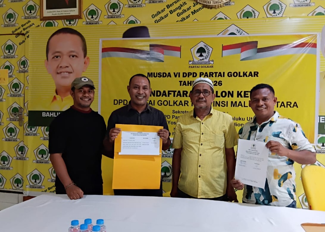 Pengambilan formulir dilakukan di Sekretariat DPD Golkar Maluku Utara dan diterima langsung oleh panitia penjaringan, pada Kamis, 9 April 2026.