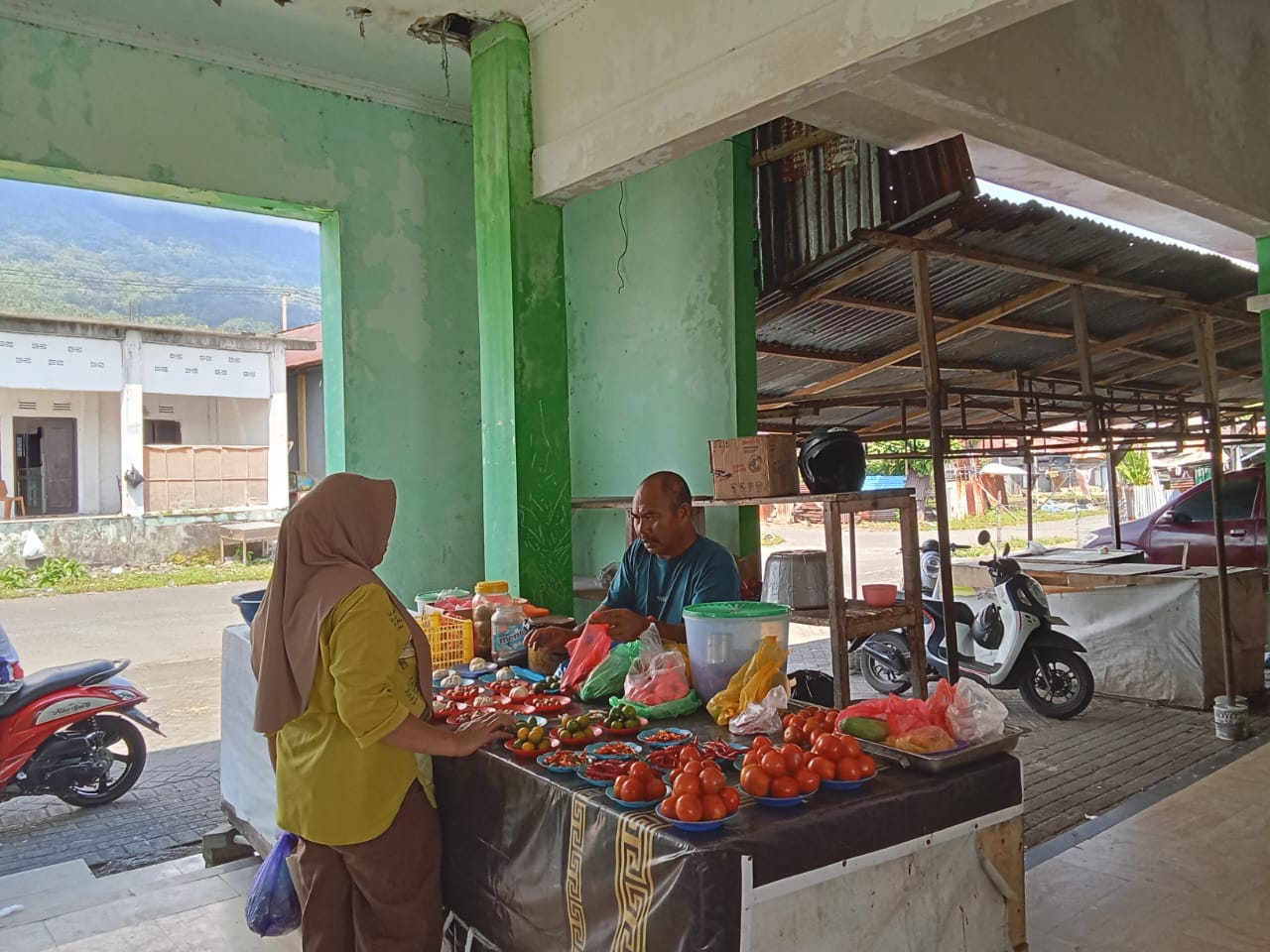 Sinar matahari menerobos masuk dari celah-celah atap yang mulai rusak, menyinari tumpukan rica (cabai) dan tomat yang ia jajakan dengan penuh ketekunan. Bagi pria asal Makian ini, panas matahari di atas kepala menjadi penanda rutinitas tengah hari yang kini jauh lebih sunyi dibandingkan masa lalu.