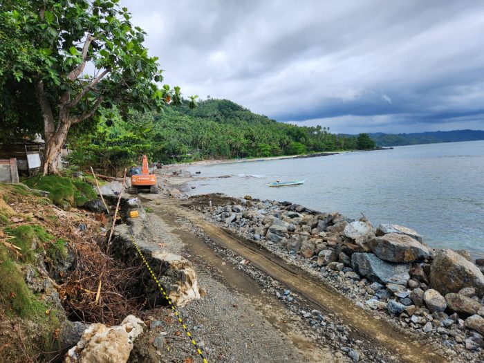 Proyek rekontruksi bangunan penguat tebing di Desa Cio Maloleo. Foto: Aswan Kharie/cermat