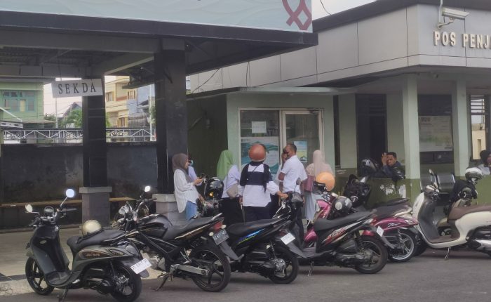 Aktivitas antrean ASN dan OPD tampak terlihat di depan ATM BPRS. Foto: Eko Pujianto/cermat