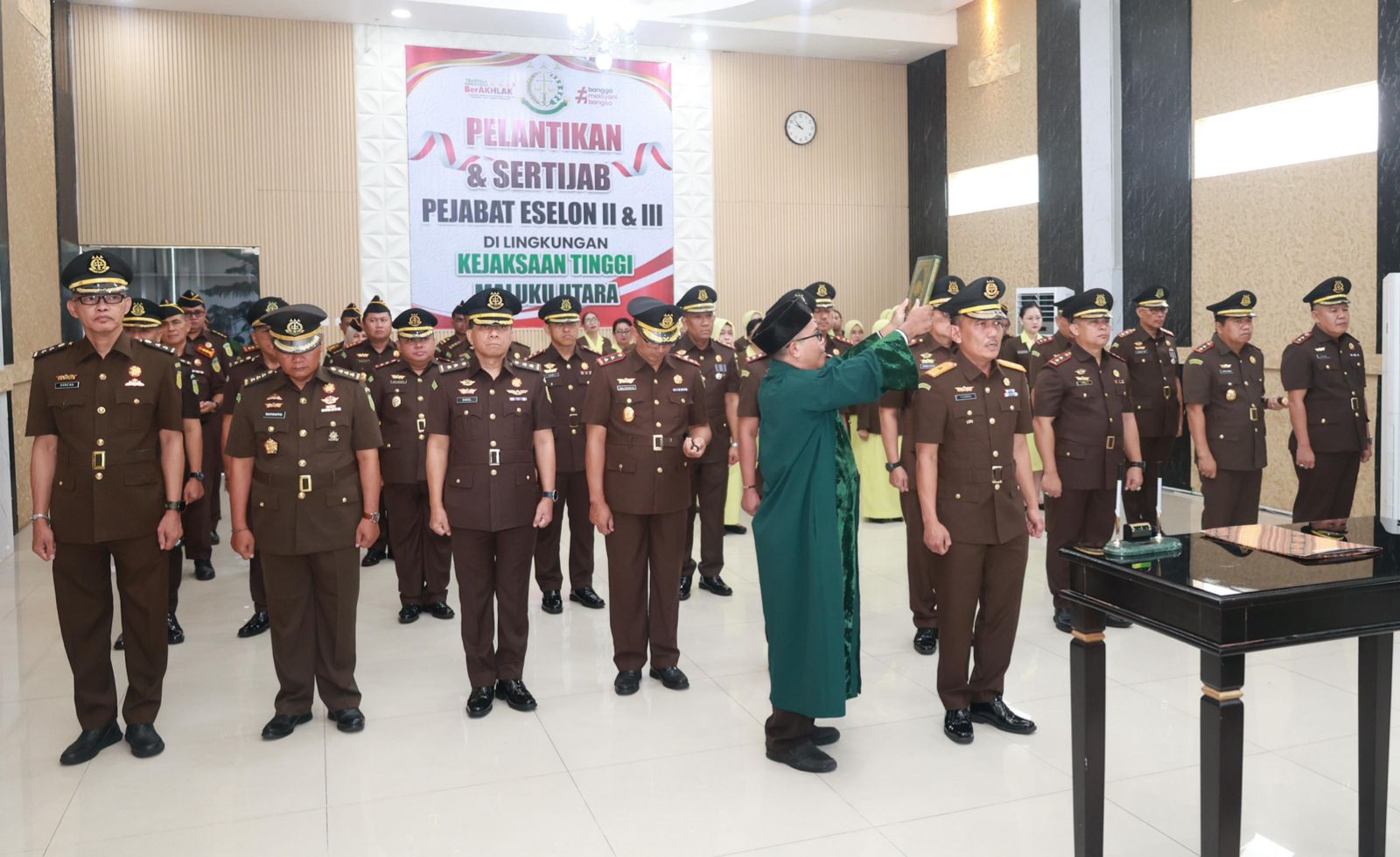 Pejabat yang dilantik mulai dari Wakajati Maluku Utara, Asisten Bidang Pemulihan Aset, Asisten Bidang Perdata dan Tata Usaha Negara (Asdatun) dan 2 Koordinator.