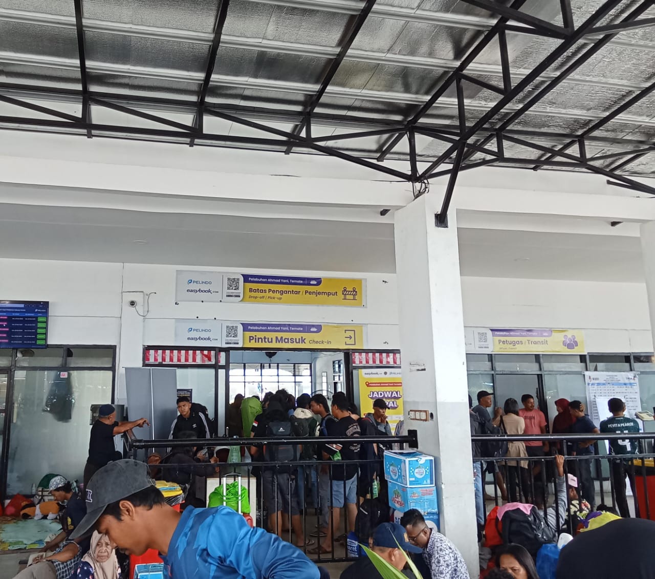 Pantauan cermat, antrean panjang tampak di area pintu masuk dan ruang tunggu pelabuhan. Kepadatan didominasi penumpang rute Ternate–Jailolo–Manado. Para penumpang rute tersebut dijadwalkan berangkat menggunakan Kapal Permata Bunda pada pukul 15.00 WIT. Sejumlah penumpang terlihat duduk di ruang tunggu sambil menjaga barang bawaan masing-masing.