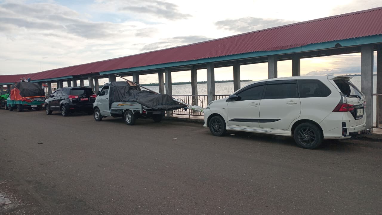 Antrean mobil di pelabuhan Ferry Tobelo. Kamis, 26 Februari 2026. Foto: Hasrillah Tari/cermat