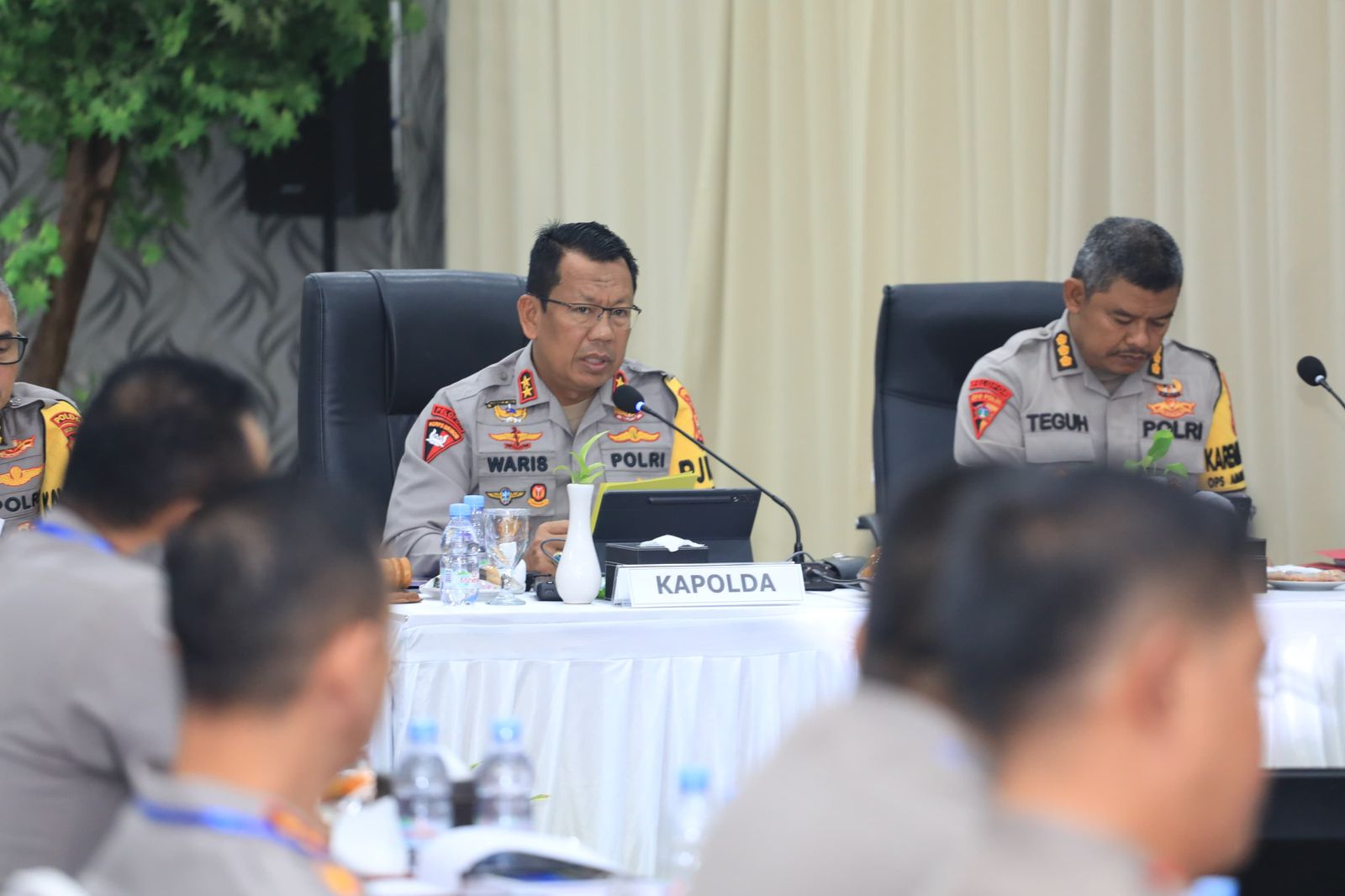 Kapolda Maluku Utara, Irjen Pol Waris Agono, bersama Wakapolda Brigjen Pol Stephen M. Napiun, memberikan arahan tegas kepada para Kapolres dan Kasat dalam kegiatan Gelar Operasional (GO) bidang pembinaan dan operasional Triwulan I tahun 2026.