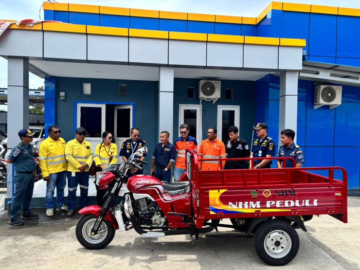 PT Nusa Halmahera Minerals (NHM) menyerahkan bantuan satu unit motor roda tiga jenis Viar kepada Kantor Unit Penyelenggara Pelabuhan (KUPP) Sofifi guna mendukung pengelolaan sampah dan kebersihan lingkungan di kawasan pelabuhan. Serah terima bantuan dilaksanakan di Kantor Pelabuhan Speed Sofifi pada Kamis, 12 Maret 2026.