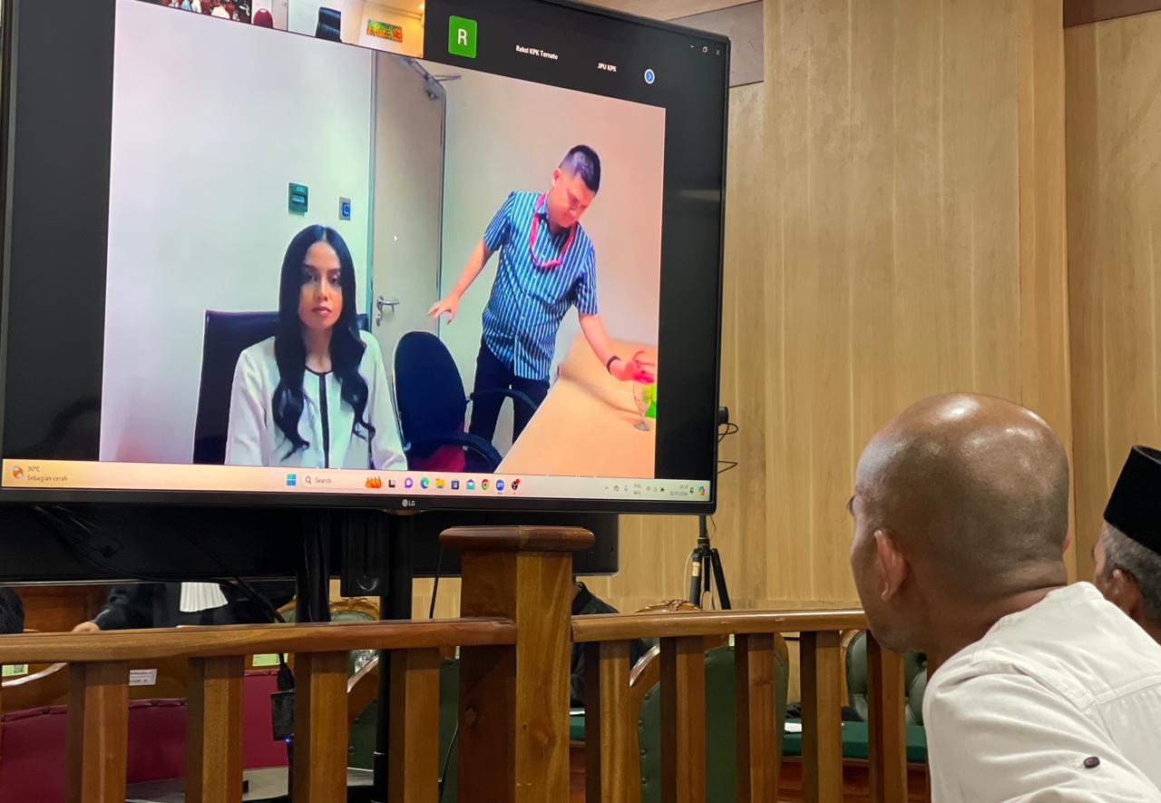 Saksi putri Indonesia perwakilan Maluku Utara saat dihadirkan dalam persidangan kasus suap AGK. Foto: Istimewa