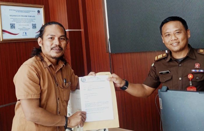 PH saat menyerahkan surat permohonan kepada pihak Kejari Ternate. Foto: Istimewa
