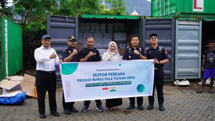 Komoditas bunga pala dari Provinsi Maluku Utara akhirnya diekspor untuk pertama kalinya ke India oleh CV. Anita Persada Gemilang yang didukung Bea Cukai, dengan total tonase 4.000 kilogram atau setara 4 ton.