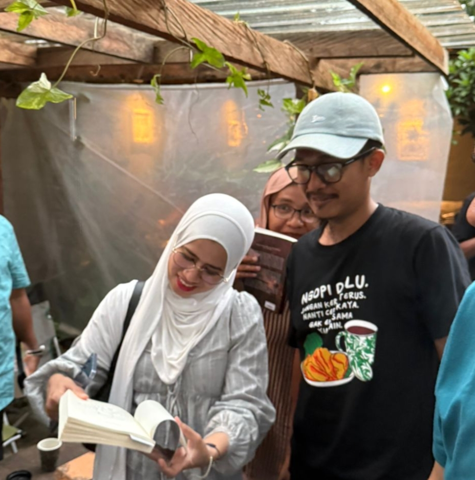 Nazla Kasuba saat menghadiri dialog publik dan diskusi buku yang digelar WALHI Maluku Utara di Rosco Caffe. Foto: Galim Umabaihi/cermat