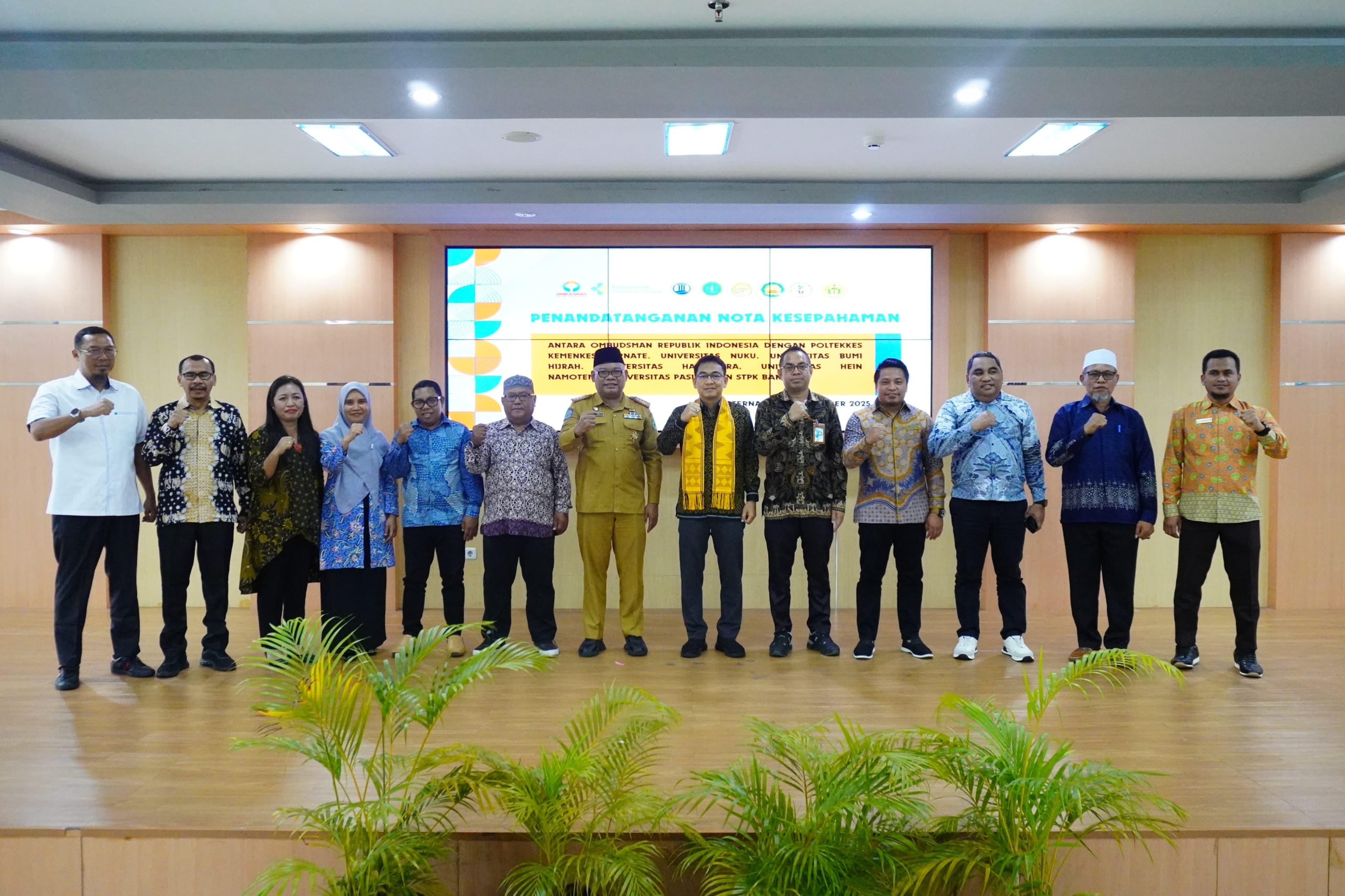 Acara tersebut dihadiri oleh civitas akademika Poltekkes Kemenkes Ternate serta perwakilan dari tujuh perguruan tinggi yang menandatangani nota kesepahaman.