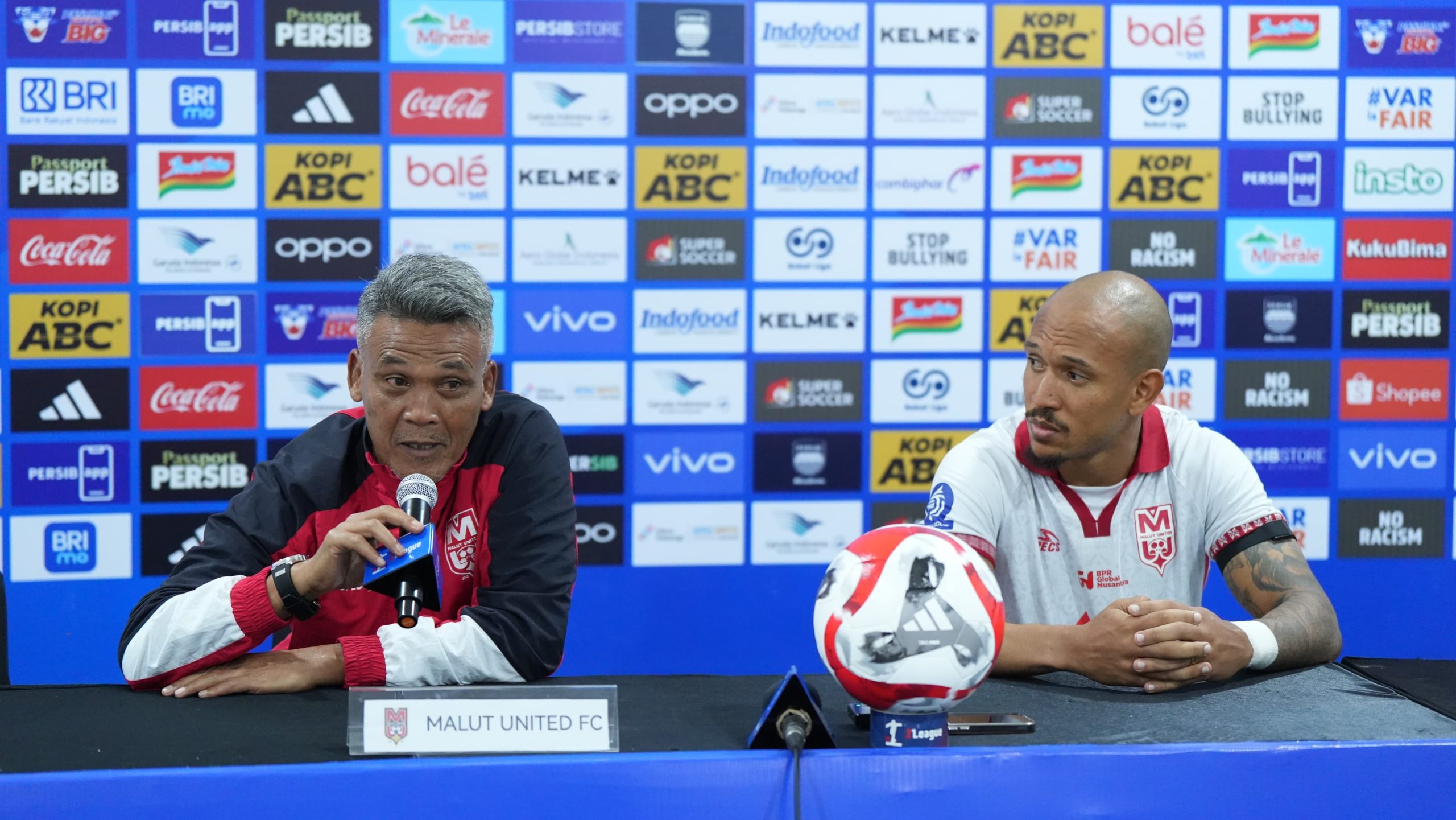 Pelatih Malut United Hendri Susilo dan Kapten Gustavo Franca dalam konferensi pers usai laga kontra Persib Bandung. Foto: Malut United Media Officer