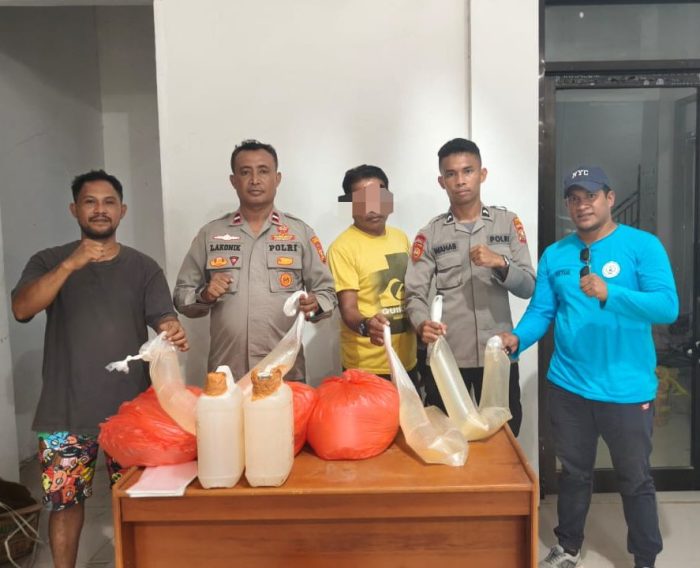 Polres Halmahera Tengah, Maluku Utara, berhasil menyita ratusan liter minum beralkohol jenis captikus di Kapal Cantika Lestari 09C yang tiba di Pelabuhan Weda, pada Kamis, 13 November 2025.