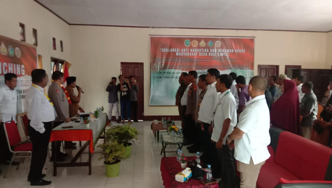 “Di Desa Buli Karya ini narkoba kosong. Minuman keras pun tidak ada yg menjual. Saya sangat bersyukur desa kami dijadikan kampung anti narkoba. Amanat yang diberikan ini menjadi tanggung jawab besar. Kita bisa sama-sama mendukung sehingga situasi Kamtibmas di desa kita ini bisa kondusif,” ucapnya.