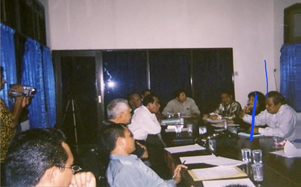Rinto Taib (tengah) bersama Tim Perumus lainnya dalam suasana sidang perumusan / penetapan sejarah lahirnya kota Ternate di Kantor Wali Kota Ternate, Tanggal 08 Juli 2003. Foto: Istimewa