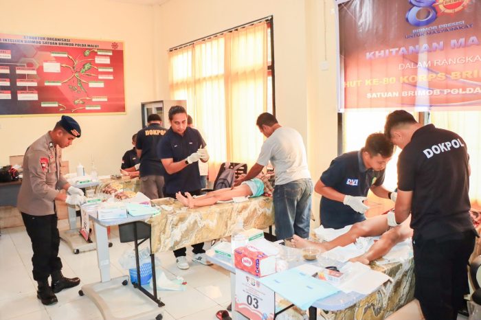 Satuan Brimob Polda Maluku Utara menggelar kegiatan bakti sosial berupa khitanan massal di Ibu Kota Sofifi, Selasa, 11 November 2025. Khitanan massal ini dalam rangka memperingati Hari Ulang Tahun (HUT) ke-80 Korps Brimob Polri tahun 2025,