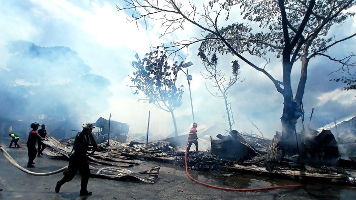 “Kami menerima informasi sekitar pukul 11.50 tadi. Rata-rata yang terbakar adalah bangunan lapak dan kedai milik pedagang,” ucap Ramli kepada media.