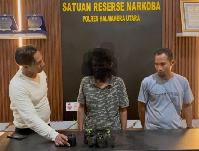Satuan Reserse Narkoba (Satresnarkoba) Polres Halmahera Utara menangkap seorang pemuda berinisial RP alias Roma (38) atas kepemilikan tujuh bibit pohon ganja di Desa Gamsungi, Kecamatan Tobelo, Selasa, 28 April 2026.