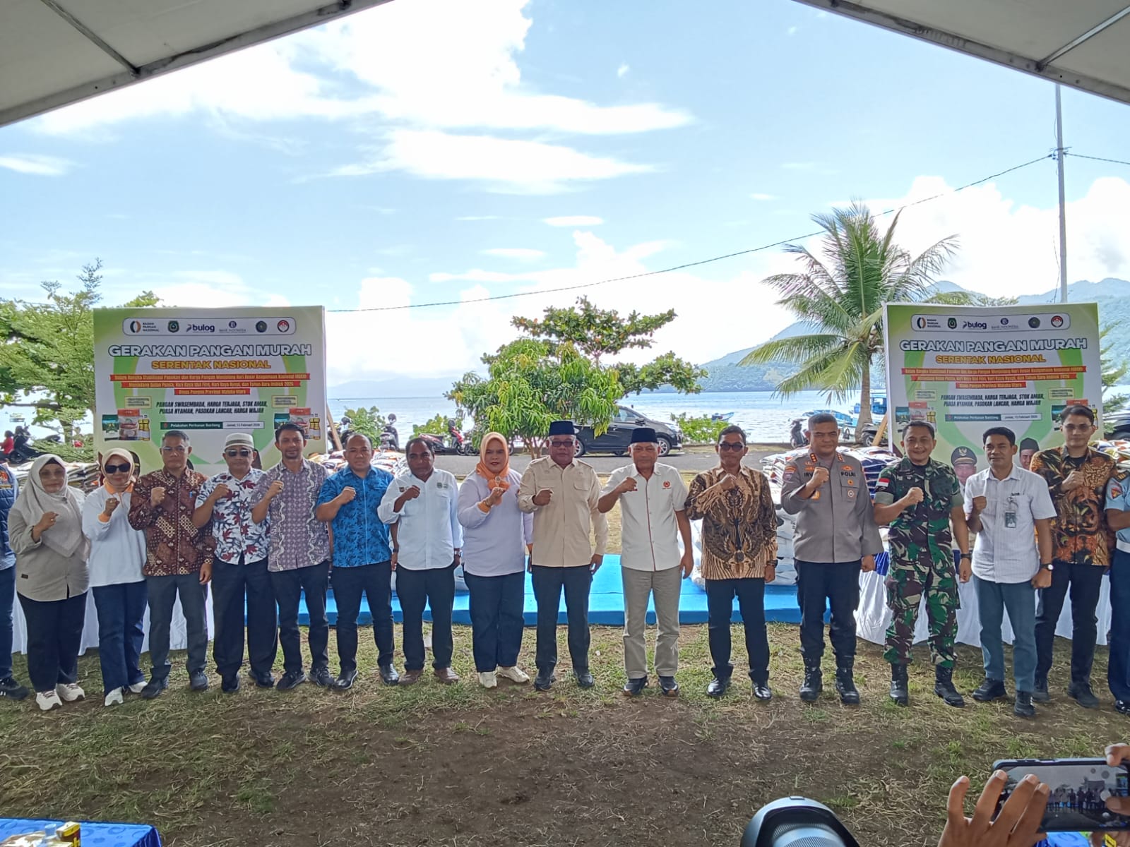Foto bersama Wakil Gubernur Maluku Utara, bersama beberapa Kepala OPD terkait usai kegiatan Gerakan Pangan Murah Serentak Nasional" di Pelabuhan Perikanan Bastiong Jumat, 13 Februari 2026. Foto: Fahri Aufat