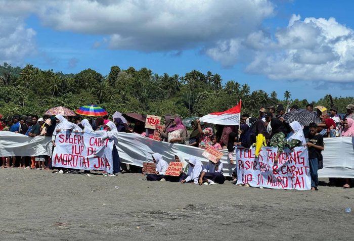 “Sikap dan perjuangan kami bukan baru hari ini, tapi sudah kurang lebih 15 tahun, sejak tqhun 2010 sampai 2025. Sampai hari ini, masyarakat empat desa masih satu sikap tegas yaitu menolak rencana pengelolaan tambang pasir besi di Morotai Jaya,” jelasnya.